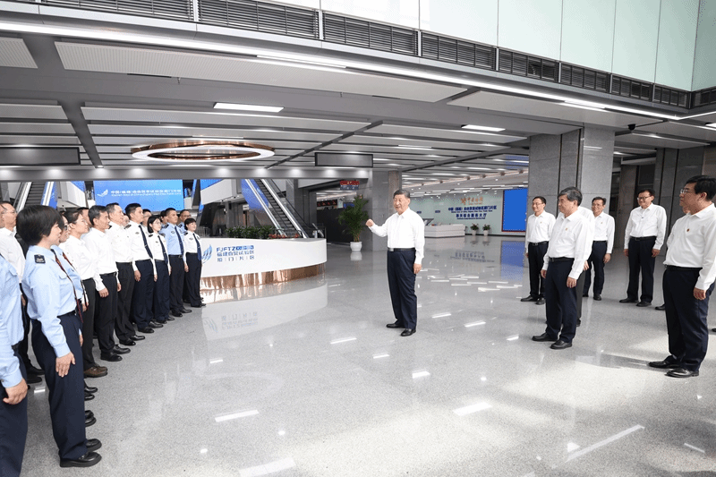 10月15日至16日,中共中央总书记、国家主席、中央军委主席习近平在福建考察。这是16日上午,习近平在中国(福建)自由贸易试验区厦门片区考察时,同综合服务大厅现场工作人员亲切交流。