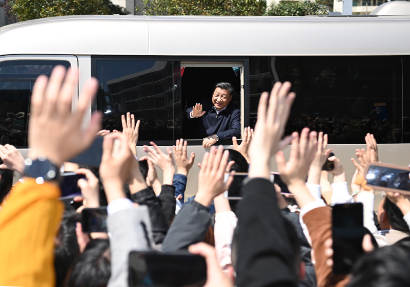 3月22日至25日,中共中央总书记、国家主席、中央军委主席习近平在福建考察。这是25日上午,习近平在福州闽江学院考察时,向师生们挥手致意。新华社记者 王晔 摄