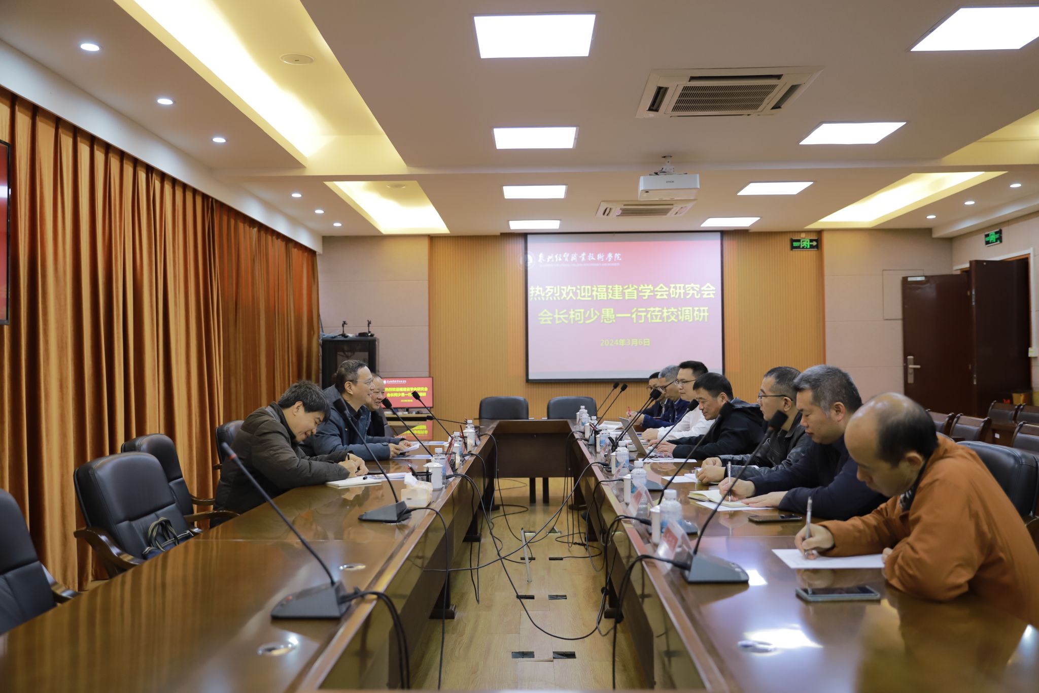 3月6日上午,福建省学会研究会会长柯少愚一行莅校就“科创中国”博士创新站建设事宜进行深入座谈交流。党委副书记、院长黄敬前,党委委员、副院长张庆武,相关部门负责人及人员参加座谈交流。