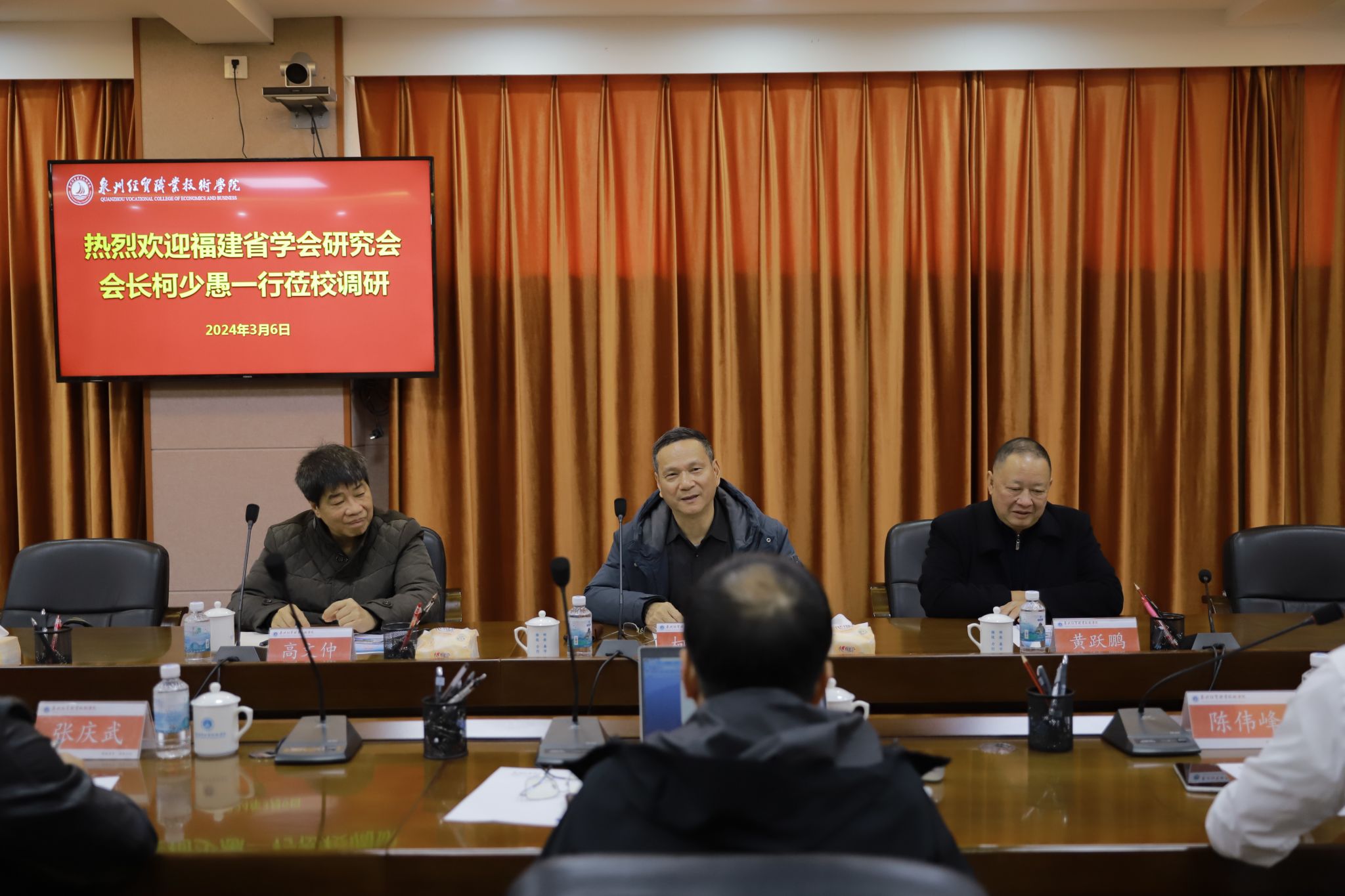 柯少愚会长对学院近年来的工作给予充分肯定。他表示,中国科协今年要在包含福建省在内的6个省份率先试行“科创中国”博士创新站试点建设,福建省学会研究会正在大力推动,希望学院能发挥特色优势,积极参与,推进人才、科技与产业的融合,持续为泉州市乃至福建省的经济社会发展提供技术技能人才和智力支撑。